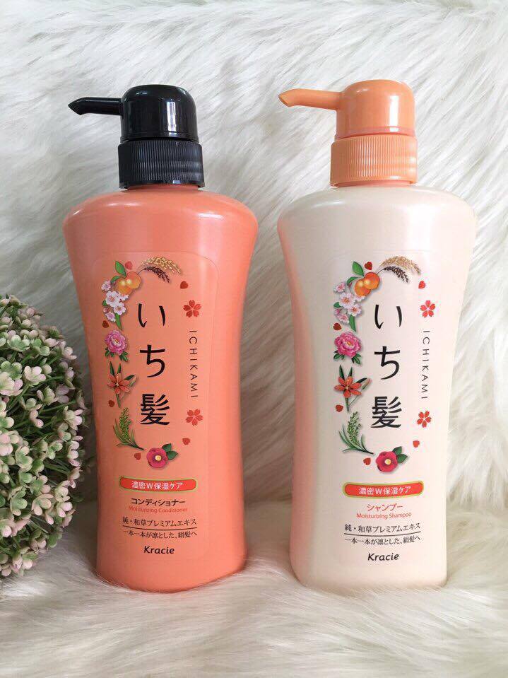 Bộ dầu gội Kracie Ichikami được chiết xuất hoàn toàn từ thảo dược thiên nhiên gồm : rong biển, tảo biển, vừng đen, gạo đen giúp kích thích mọc tọc, ngăn ngừa rụng tóc, giúp tóc luôn suôn mượt, phục hồi cho tóc khô, hư tổn.