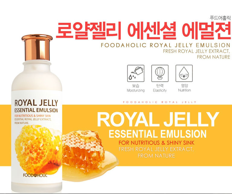 2: Lọ sữa dưỡng da – Foodaholic Royal jelly essential emulsion – 150 ml Sữa Royal Jelly Essential Emulsion là tinh chất dưỡng, dưỡng sâu vào da.