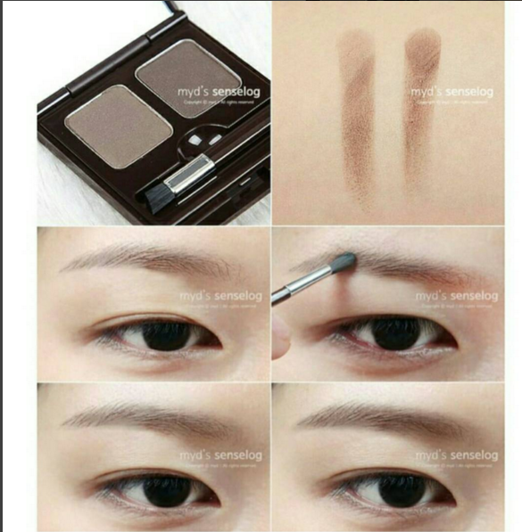 Dùng cọ chải mày kèm theo sản phẩm chải đều chân mày rồi lấy cọ tán màu vẽ nhạt dần theo khuôn chân mày để tạo hiệu ứng tự nhiên, bạn có thể chọn dùng 1 màu, hoặc cũng có thể phối hợp cả 2 màu với nhau (chia màu cho đầu mày và đường cong đuôi mày) rồi dùng ngón tay mix lại lần nữa để tạo hiệu ứng thật tự nhiên.
