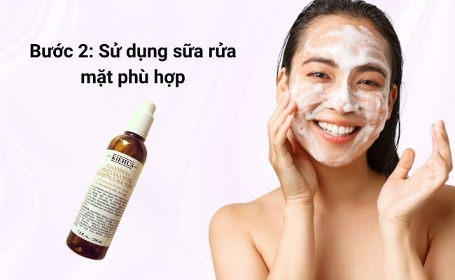 Sử dụng sữa rửa mặt dịu nhẹ để làm sạch sâu, giúp da thông thoáng.