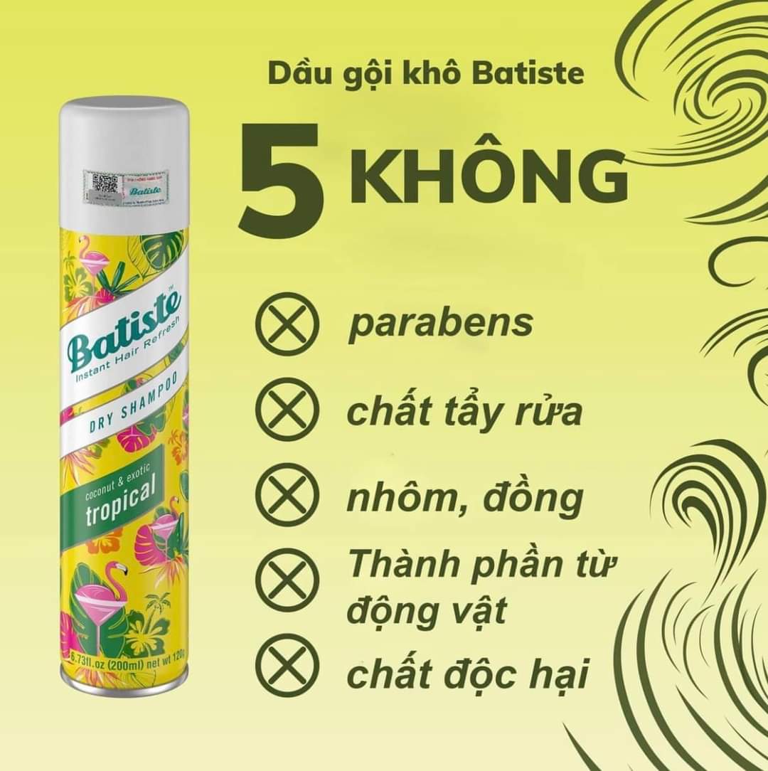 2. Batiste Dry Shampoo - Tropical (Màu vàng): Hương hoa cỏ nhiệt đới.