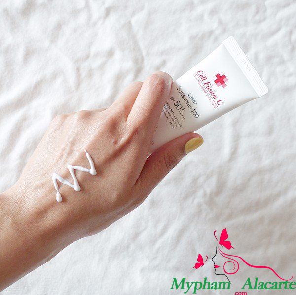 - Ưu điểm: Laser Sunscreen 100 Céll Fùsion C bảo vệ da kéo dài suốt 12 tiếng, không cần thoa lại.
