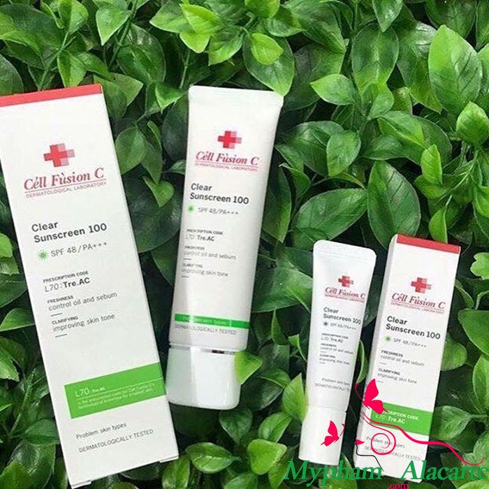 - Chỉ số SPF50+/ PA+++ cao, kem chống nắng Cell Fusion Hàn Quốc bảo vệ làn da “nhạy cảm” khỏi tia tử ngoại, ngăn chặn sự lão hóa da bởi ánh nắng mặt trời và giảm tối da kích ứng da.