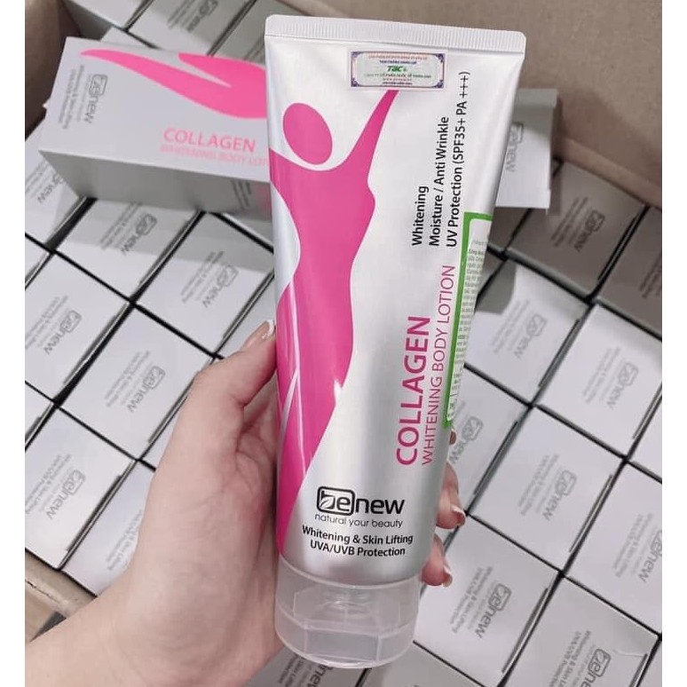 Kem Dưỡng Thể Trắng Da Toàn Thân Benew Collagen có thành phần Collagen tươi giúp tái tạo tế bào da mới, phục hồi da hư tổn, nâng cơ da, làm mờ nếp nhăn, bổ sung độ ẩm cho da. Sản phẩm dùng cho toàn thân, thích hợp với mọi loại da.