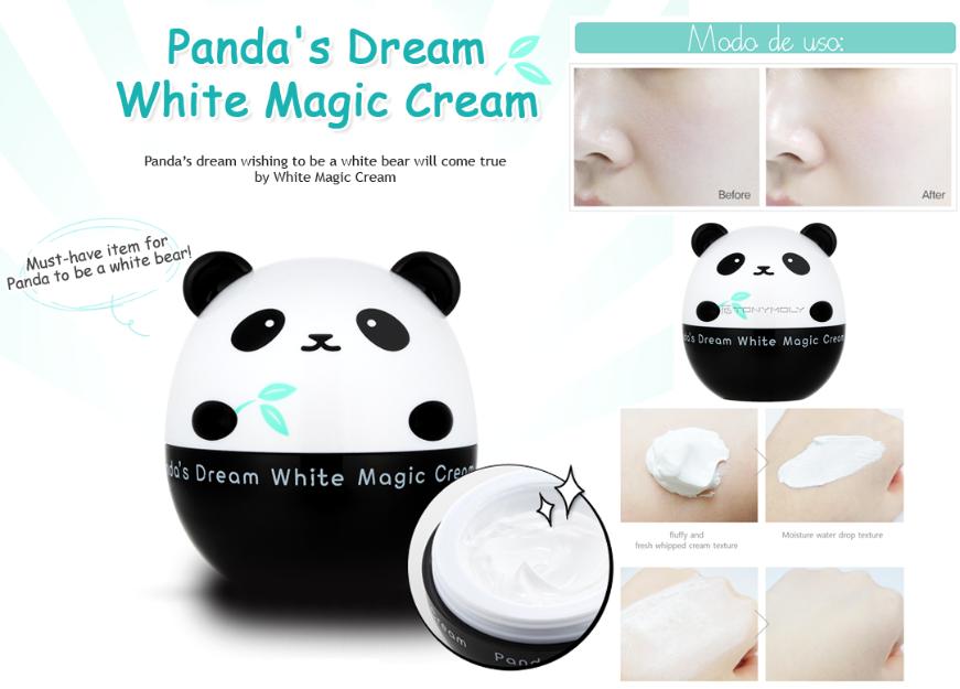 - Kem làm trắng da kỳ diệu Panda’s Dream White Magic còn xóa đi tất cả những khuyết điểm trên làn da như mụn đỏ, lỗ chân lông to, mụn đầu đen, thâm mụn… làn da của bạn sẽ được chăm sóc hàng ngày thật dịu nhẹ hoàn hảo mà không có chứa chất tẩy trắng độc hại, không gây bết dính bóng nhờn.
