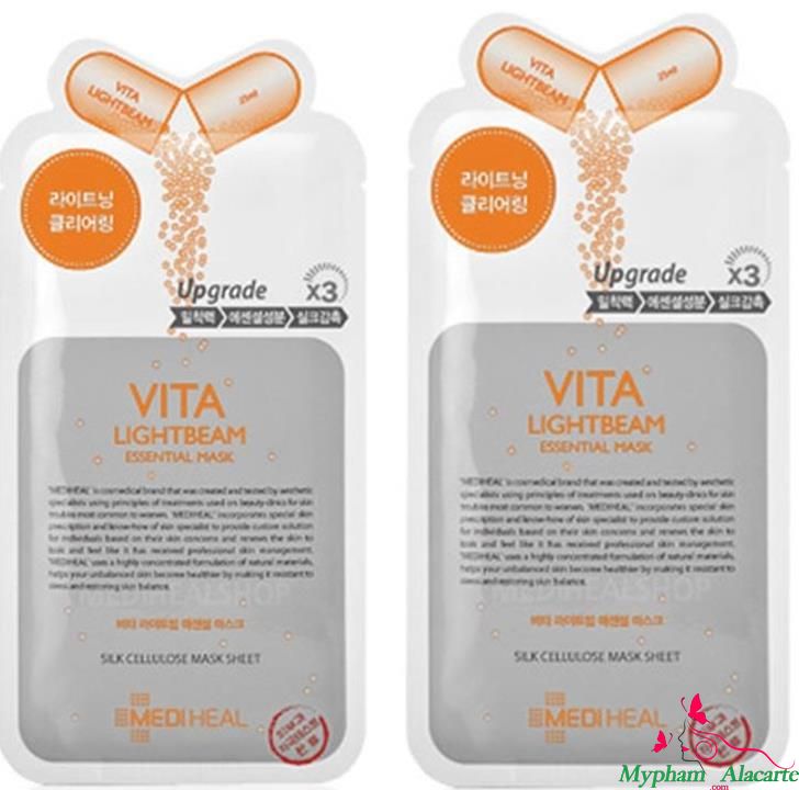*Mặt nạ vita Mediheal Vita Lightbeam Essential Mask: Chiết xuất Vitamin C, Tocopherol (Vitamin E), nước trái cây tự nhiên, làm trắng sáng da. Phù hợp với mọi loại da kể cả da nhạy cảm.