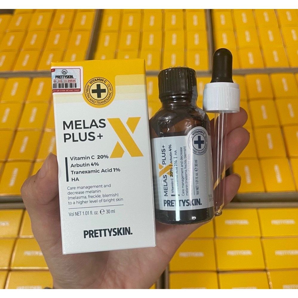 Tinh Chất DưỡngTrắng Da Mờ Thâm Nám Tàn Nhang PrettySkin Melas X Plus + là tinh chất giúp giảm dầu nhờn và ngăn ngừa mụn, hỗ trợ se khít lỗ chân lông, làm căng bóng da nhanh chóng đồng thời dưỡng da trắng sáng, phục hồi làn da tươi trẻ và khỏe mạnh hơn.