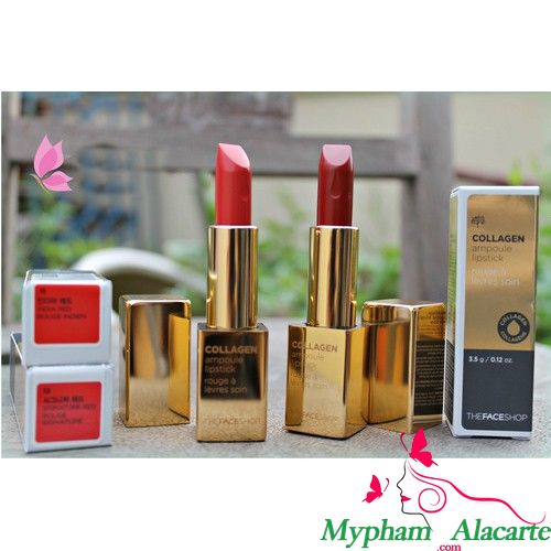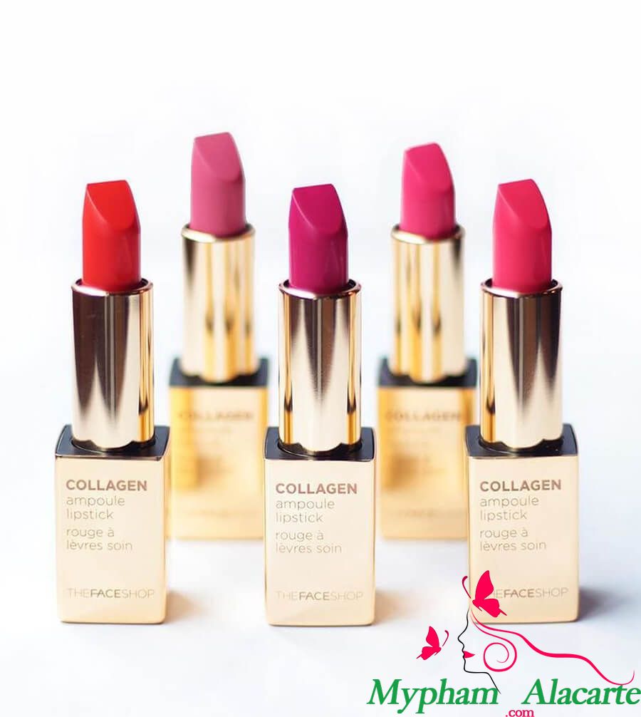 Collagen Ampoule Lipstick là sản phẩm son thỏi vừa được ra mắt của THE FACE SHOP, với kết cấu son mịn như nhung, vừa có độ bám màu cao lại vừa dưỡng cho đôi môi của bạn không bị khô khi sử dụng, hứa hẹn sẽ làm cho các tín đồ son môi cực kì hài lòng!