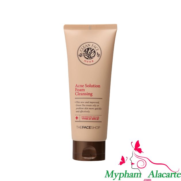 Sữa Rửa Mặt Trị Mụn The Face Shop – Clean Face Acne Solution Foam Cleanser giúp làm sạch làn da nhẹ nhàng với thành phần kháng khuẩn từ cây trà, với phức hợp kháng khuẩn tác động sâu vào lỗ chân lông giúp loại trừ những tác nhân gây mụn và nhẹ nhàng làm sạch làn da bị tổn thương, giúp kháng viêm, diệt khuẩn và ngăn ngừa các nguyên nhân gây mụn.