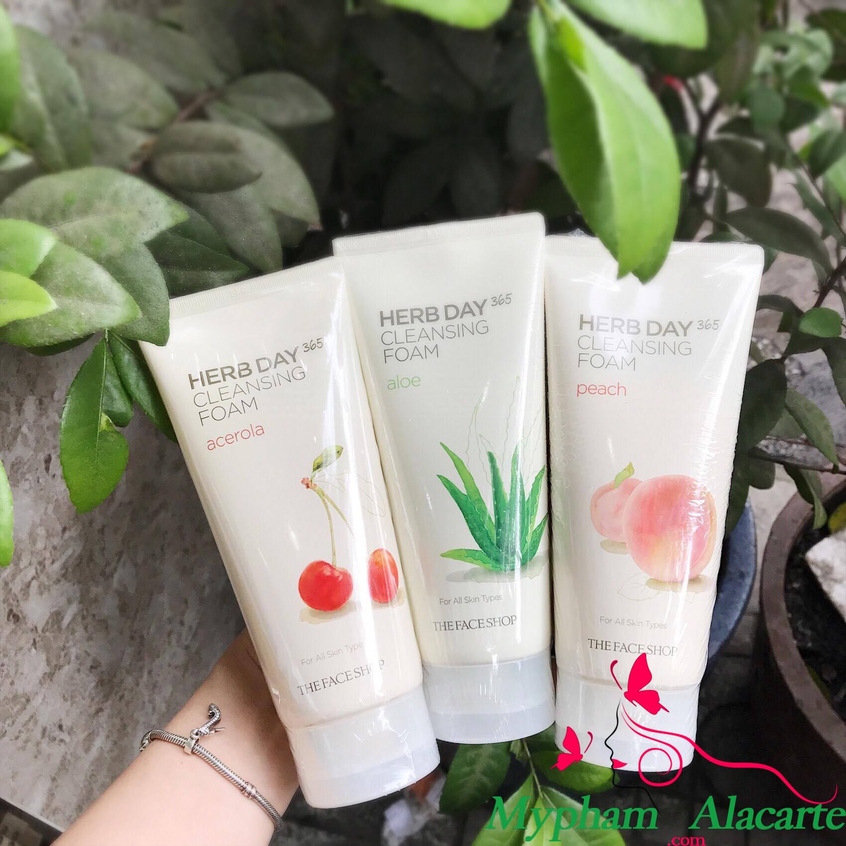 Sữa Rửa Mặt Hoa Qủa Herb Day 365 Cleansing Foam của The Face Shop có tác dụng làm sáng da tăng cường độ âm giúp se khít lỗ chân lông, phục hồi và tái tạo cho làn da hồng hào tự nhiên đồng thời chống lão hóa, làm sạch bã nhờn và sừng chết lâu ngày trên da đem lại cho làn da trắn sáng, mịn màng.