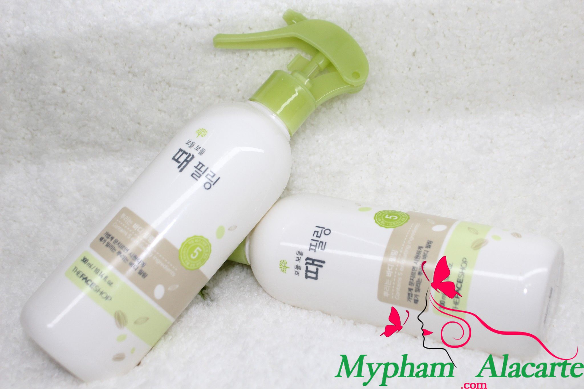 Thành phần: Body scrub spray Thefaceshop có chiết xuất từ ngũ cốc đậu tương, đậu xanh, lúa mì, lúa mạch. gạo, thích hợp cho da nhạy cảm làm cho da ẩm, mịn màng. Thành phần có chứa lô hội, ceramide làm cho làn da ẩm mịn.