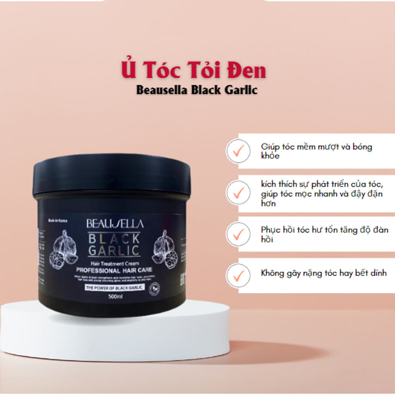 - Kem Ủ Tóc Tỏi Đen Beausella Black Garlic Hair Treatment Cream được chiết xuất từ tỏi đen đen giúp cung cấp dưỡng chất quý giá cho tóc của bạn, giúp tóc mềm mượt và bóng khỏe. Tinh dầu tỏi đen còn có khả năng kích thích sự phát triển của tóc, giúp tóc mọc nhanh và đậy đặn hơn.