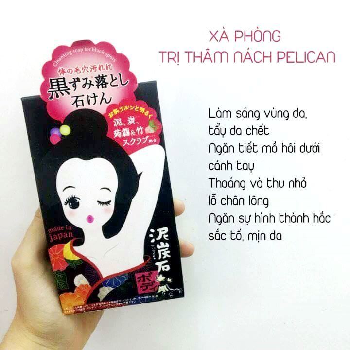 Xà phòng trị thâm nách Nhật Bản Pelican có tác dụng tẩy tế bào chết nhưng vẫn bổ sung những tinh chất dưỡng ẩm; cho vùng da dưới cánh tay không chỉ sạch sẽ mà còn mịn màng. Ngoài ra, xà phòng trị thâm nách Pelican còn có khả năng làm sáng vùng da, tẩy lớp da chết, sần sùi tận sâu lỗ chân lông, cho bạn tự tin thoải mái trong các hoạt động.