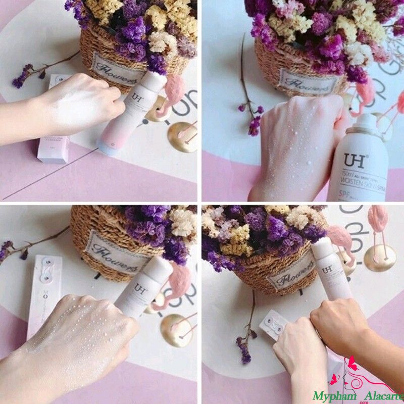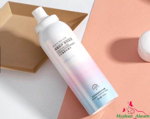 Chai xịt chống nắng Maycreate bảo vệ da bạn khỏi tia UVA/UVB tác nhân gây tổn hại da với dạng màn sương nhẹ, thoáng khí. Chống nắng dạng xịt phun sương (mist), khi xịt ra sẽ thấy dung dịch rất lỏng màu trong suốt, không bết dính, dễ dàng thẩm thấu trên bề mặt da. Sản phẩm có chỉ số chống nắng SPF 30+ và Broad Spectrum (phổ rộng, chống được cả UVA và UVB). Có thể dùng cho mặt nhưng không được xịt trực tiếp lên mặt mà phải xịt lên tay sau đó bôi lên.