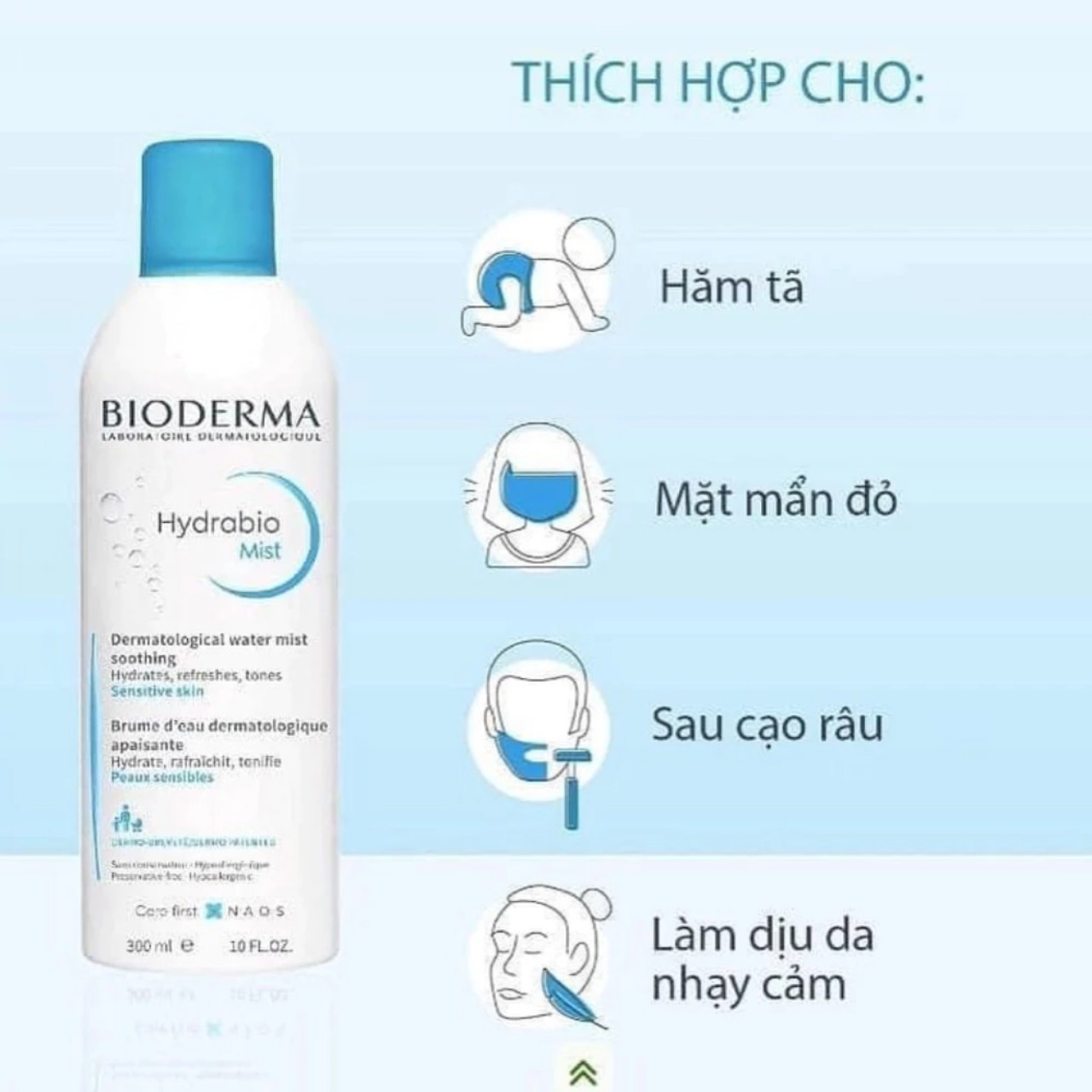 Xịt Khoáng Bioderma Hydrabio BrumeCó tác dụng cấp nước cực kì tốt. Lập tức làm dịu bề mặt khô ráp, hạn chế tình trạng khô căng tức thì. Thậm chí người mới đi lăn kim, chưa dùng được nhiều sản phẩm cũng có thể xịt khoáng trực tiếp để cấp ẩm cho da. Tia xịt khá mạnh tạo cảm giác sảng khoái.